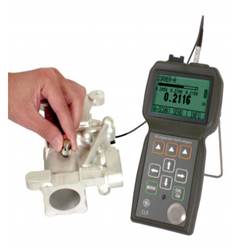 CL 5聲速測(cè)試選項(xiàng)為用戶提供了一種用于確定厚度已知材料的聲速的測(cè)量模式。可手動(dòng)輸入材料厚度,也可以裝上數(shù)顯卡尺將厚度值以電子方式從卡尺發(fā)送給CL 5。