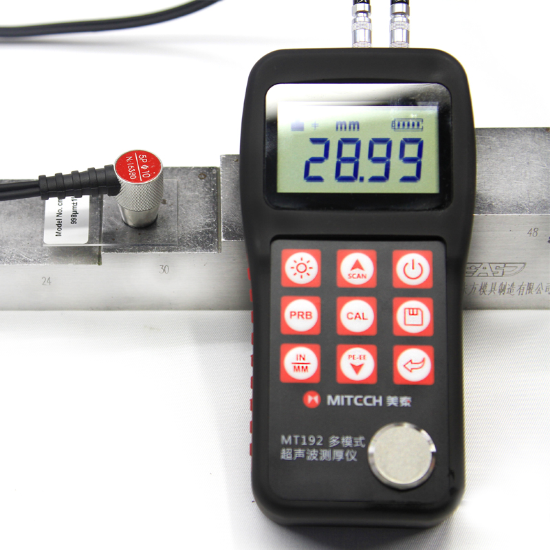MT192超聲波測厚儀,基于超聲波測量原理,可對金屬、塑料、陶瓷、玻璃及其他多種超聲波的良導(dǎo)體材料進行厚度測量,也可實現(xiàn)對材料聲速的反測。與傳統(tǒng)的測量方法相比,超聲波測厚儀的優(yōu)勢在于它只要接觸到被測工件的一面即可完成測量,其獨特的可穿透涂層測厚度的性能為表面涂有油漆或防腐材料的工件厚度檢測提供了更加準確的解決方案,測量前無需處理掉表面的涂層,可以直接測量。被廣泛應(yīng)用于石油、化工、冶金、造船、航空、航天等領(lǐng)域的生產(chǎn)設(shè)備中各種管道及壓力容器腐蝕減薄程度的監(jiān)測,也可用于對各種板材及各種加工零件做準確的測量。是提高生產(chǎn)效率與合格率、節(jié)約成本的專業(yè)儀器。