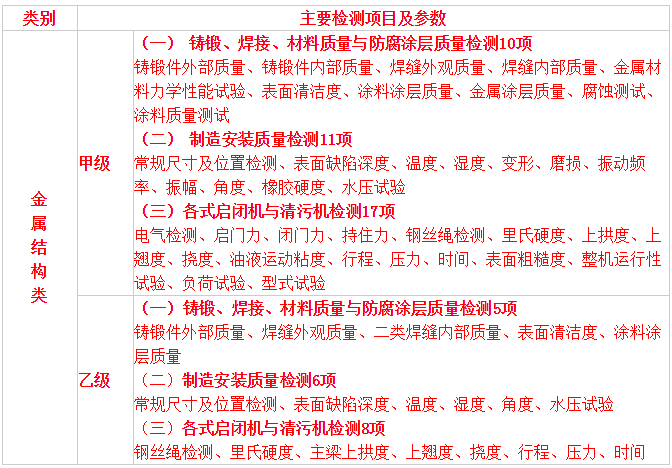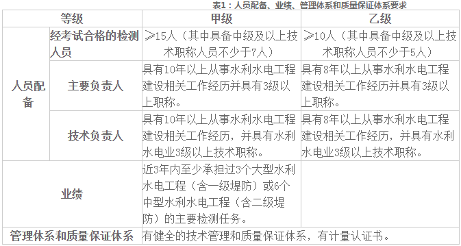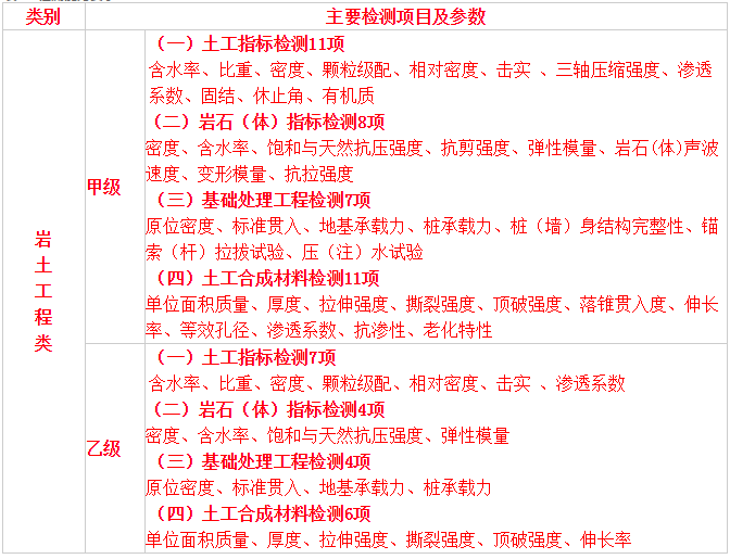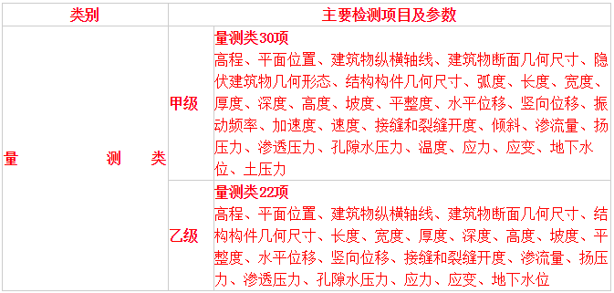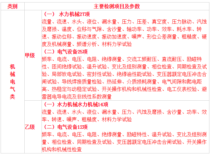 水利工程質量檢測單位資質分為巖土工程、混凝土工程、金屬結構、機械電氣和量測5個類別,每個類別分為甲級、乙級2個等級