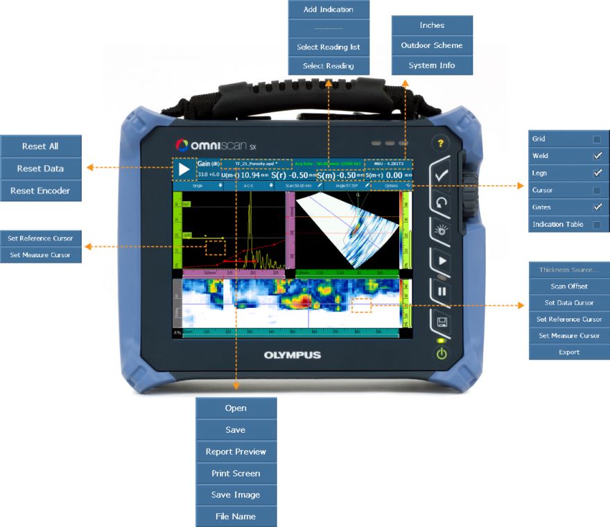 輕便的單組Omniscan SX儀器裝有一個方便用戶閱讀的8.4英寸(21.3厘米)觸摸屏,可提供高的檢測解決方案。Omniscan SX儀器有兩個型號:SX PA和SX UT。SX PA是一款16:64PR 儀器,與僅利用UT技術的SX UT一樣,也配備了一個常規(guī)UT通道,用于脈沖回波(P/E)、一發(fā)一收(P-C)或衍射時差(TOFD)檢測。